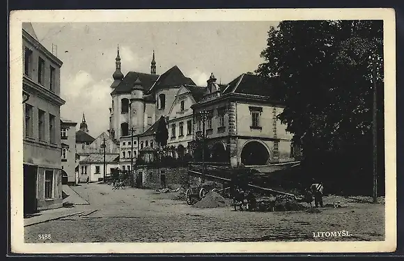 AK Litomysl, Strassenpartie mit Blick zur Kirche