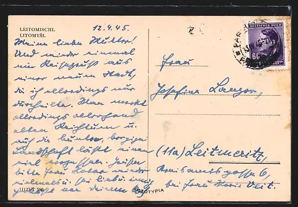 alte Ansichtskarte, gelaufen 1945, guter Zustand
