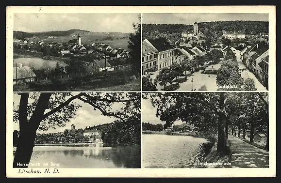 AK Litschau, Stadtplatz, Herrenteich mit Burg