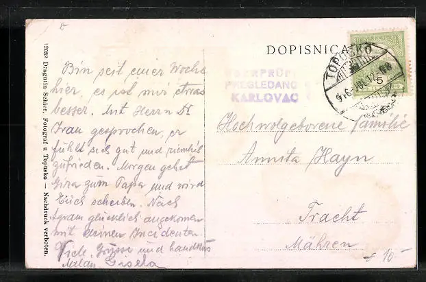 gelaufen 1916, Ecken bestoßen, guter Zustand