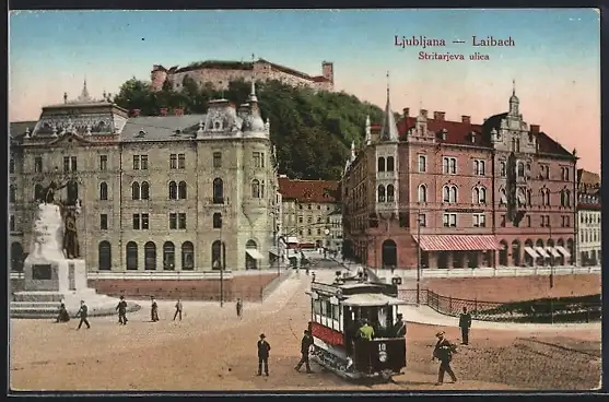 AK Ljubljana-Laibach, Stritarjeva ulica, Strassenbahn