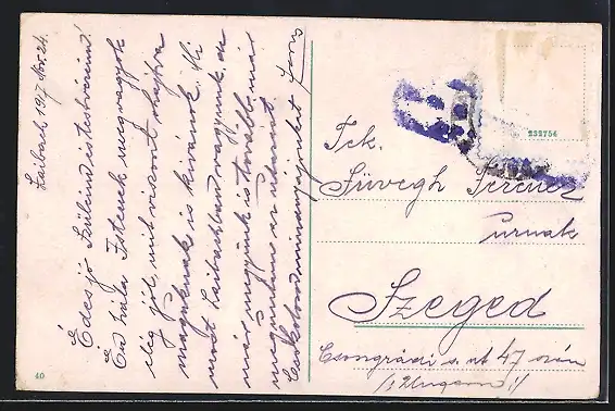 alte Ansichtskarte, gelaufen 1917, Briefmarke entfernt, rückseitig Oberflächenschaden, guter Zustand