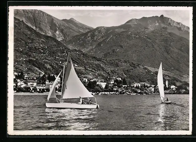 AK Locarno-Muralto, Ortsansicht mit See und Segelschiffen