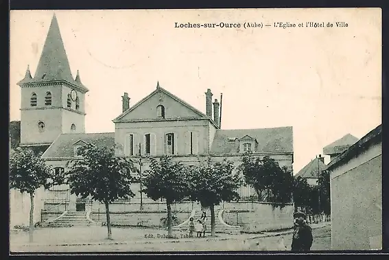 AK Loches-sur-Ource, L`Église et l`Hôtel de Ville