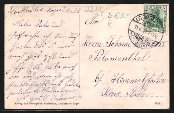 alte Ansichtskarte, gelaufen 1911, Eckknick links oben, guter Zustand