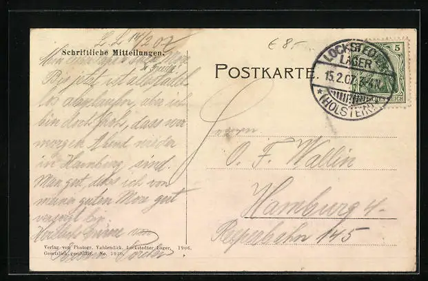 alte Ansichtskarte, gelaufen 1907, guter Zustand