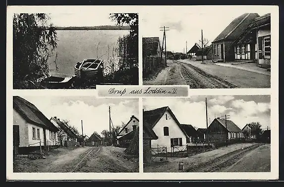 AK Loddin, Strassenpartie, Ortsansichten, Boot am Ufer