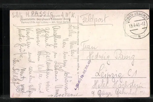 alte Ansichtskarte, gelaufen 1940 als Feldpost, guter Zustand