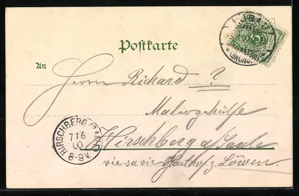 alte Ansichtskarte, gelaufen 1900, guter Zustand