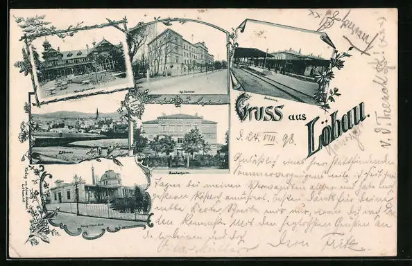 AK Löbau, König-Albert-Bad, Realschule, Bahnhof