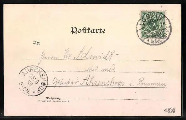 alte Ansichtskarte, gelaufen 1898, guter Zustand