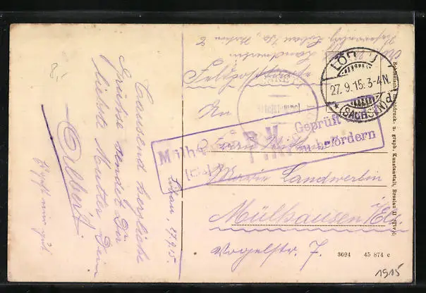 alte Ansichtskarte, gelaufen als Feldpost 1915, guter Zustand
