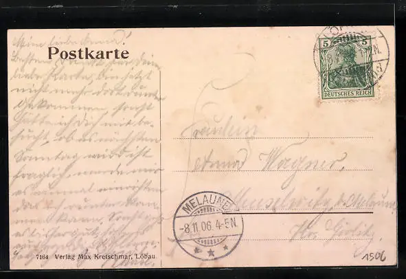 alte Ansichtskarte, gelaufen 1906, Stempelspur, guter Zustand