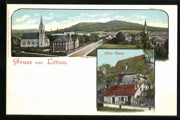 AK Löbau, Ortsansicht und Altes Haus