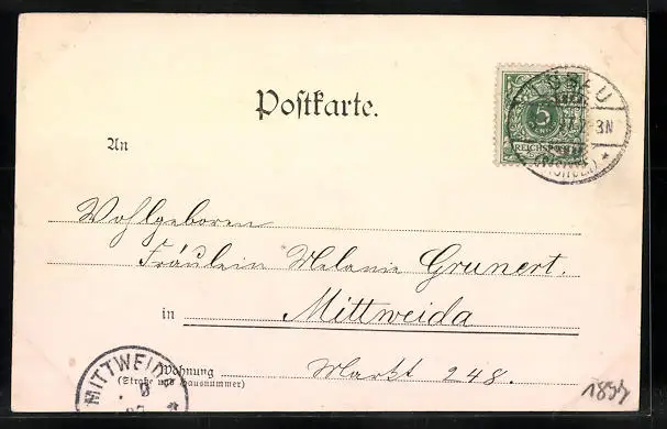 alte Ansichtskarte, gelaufen 1897, Stempelspur, guter Zustand
