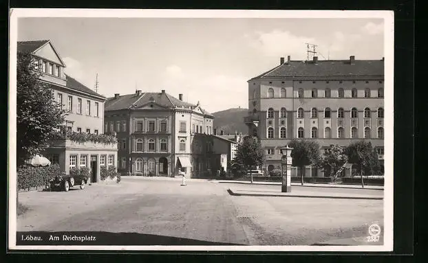 AK Löbau /Sa., Am Reichsplatz mit Blick gegen Löbauer Berg
