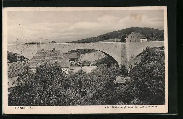 AK Löbau /Sa., Die Hindenburgbrücke mit Löbauer Berg