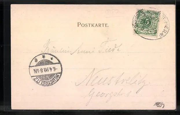 alte Ansichtskarte, gelaufen 1899, Eckknick unten li., guter Zustand