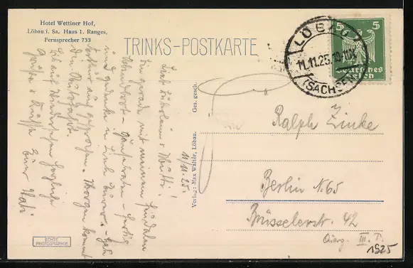 alte Ansichtskarte, gelaufen 1925, guter Zustand