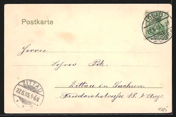 alte Ansichtskarte, gelaufen 1905, guter Zustand