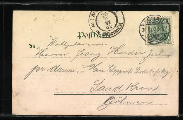 alte Ansichtskarte, gelaufen 1902, Eckknick li. unten, guter Zustand