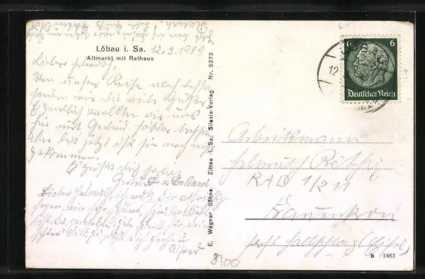 AK Löbau i. Sa., Altmarkt mit Rathaus