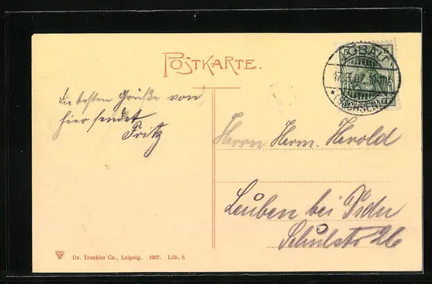 alte Ansichtskarte, gelaufen 1907, guter Zustand