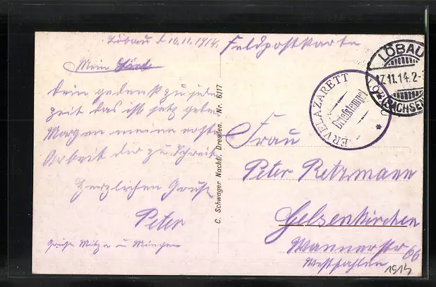 alte Ansichtskarte, gelaufen 1914 als Feldpost, guter Zustand