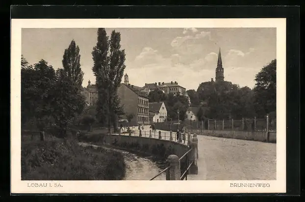 AK Löbau i. Sa., Brunnenweg, Blick zur Kirche