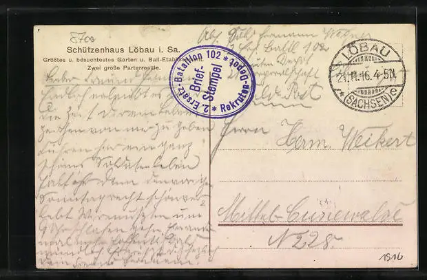 alte Ansichtskarte, gelaufen 1916 als Feldpost, guter Zustand