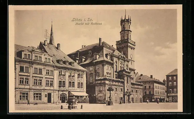 AK Löbau i. Sa., Markt mit Rathaus