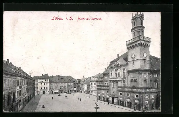 AK Löbau i. Sa., Markt mit Rathaus