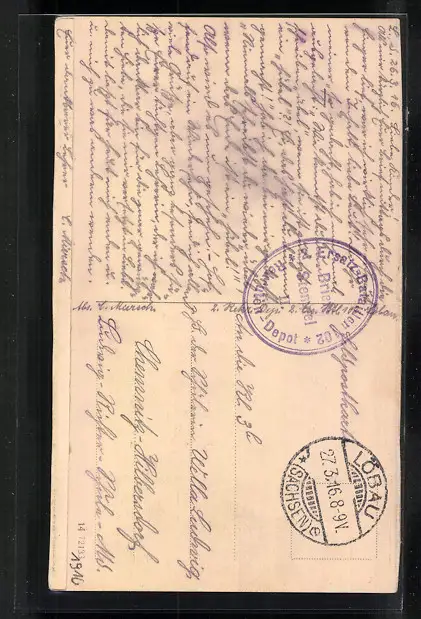 alte Ansichtskarte, gelaufen 1916 als Feldpost, rückseitig Klebe- und Papierreste, guter Zustand