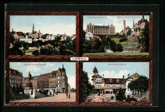 AK Löbau i. Sa., Ortsansicht mit Bismarckdenkmal