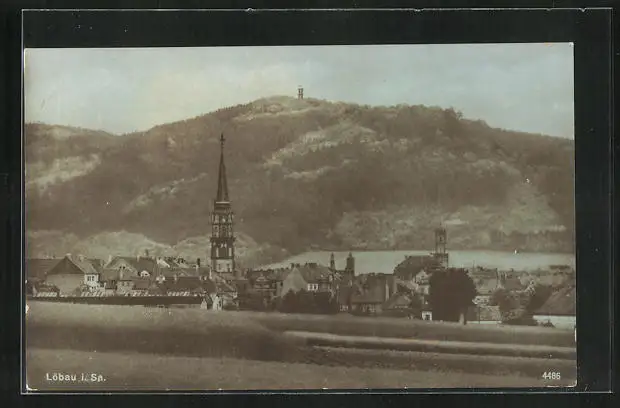 AK Löbau i. Sa., Ortsansicht mit Kirche