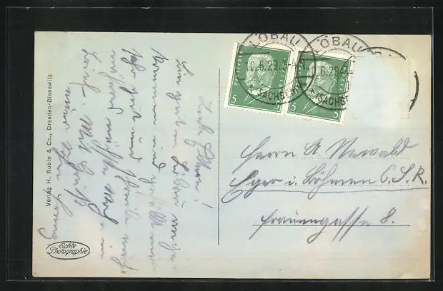 alte Ansichtskarte, gelaufen 1929, Briefmarke entfernt, rückseitig Oberflächenschaden, guter Zustand