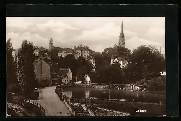 AK Löbau i. Sa., Ortsansicht mit Kirche