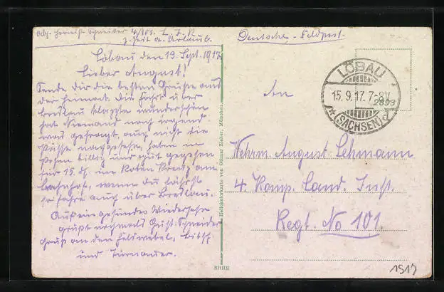 alte Ansichtskarte, gelaufen 1917 als Feldpost, guter Zustand