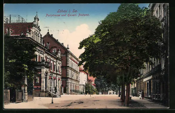 AK Löbau i. Sa., Poststrasse und Kaiserliches Postamt