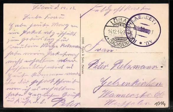 alte Ansichtskarte, gelaufen als Feldpost 1914, Stempelspur, guter Zustand
