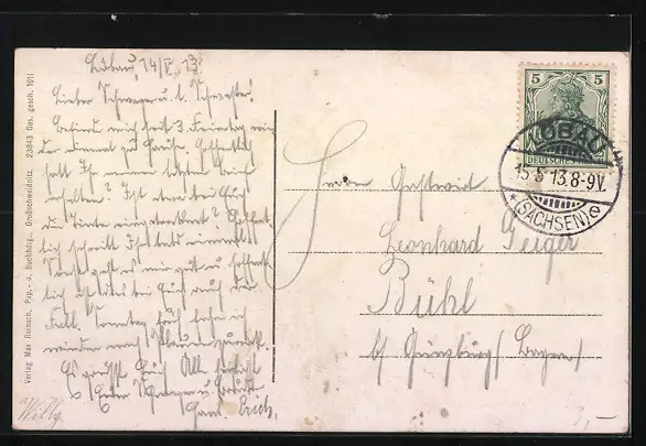 alte Ansichtskarte, gelaufen 1913, Stempelspur, guter Zustand