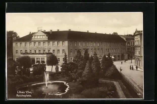 AK Löbau i. Sa., Reichsplatz mit Springbrunnen