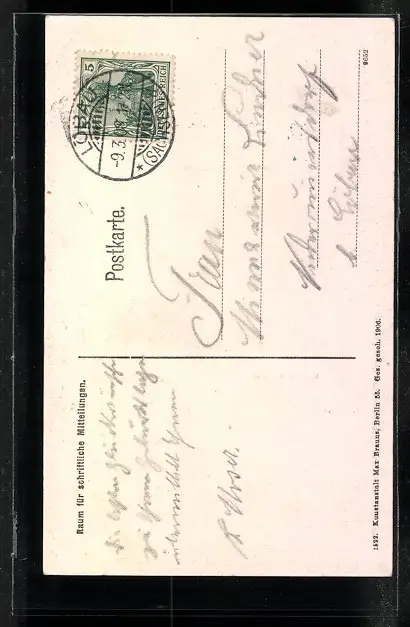 alte Ansichtskarte, gelaufen 1908, Eckknick oben re., Bugspur oben re., guter Zustand