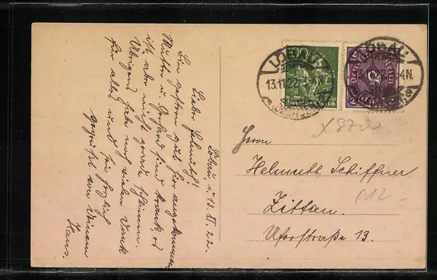 alte Ansichtskarte, gelaufen 1922, guter Zustand