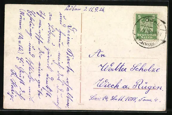 alte Ansichtskarte, gelaufen 1926, Eckknicke li. oben u. re. unten, Stempelspur, guter Zustand
