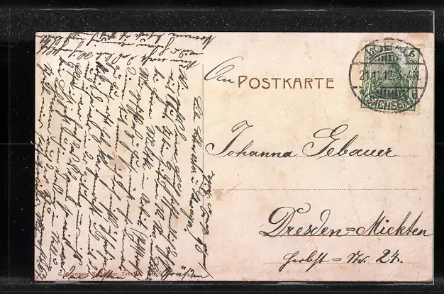 alte Ansichtskarte, gelaufen 1912, Stempelspur, guter Zustand