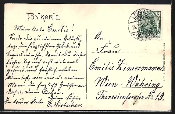 alte Ansichtskarte, gelaufen 1908, guter Zustand