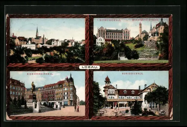 AK Löbau i. Sa., Totalansicht mit Gasthaus Honigbrunnen