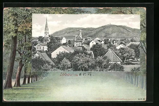 AK Löbau i. Sa., Totalansicht mit Kirche