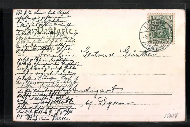 alte Ansichtskarte, gelaufen 1908, guter Zustand